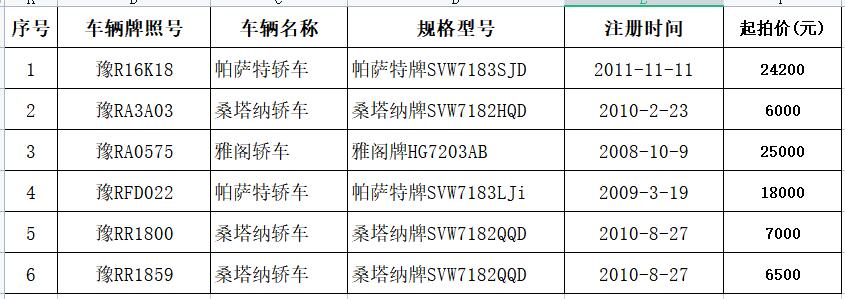 中行南陽(yáng)分行車(chē)輛拍賣(mài)公告  2022-12-6